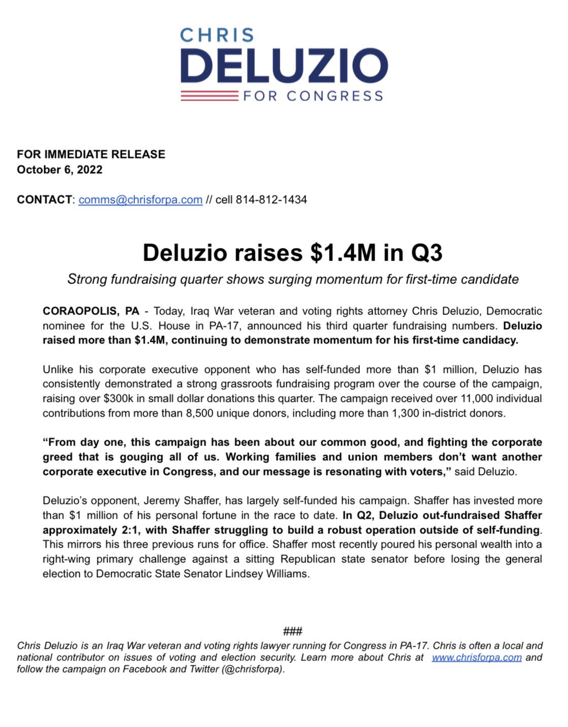 Chris Deluzio On Twitter I Am So Proud Of The Broad Coalition Of Grassroots Support Powering This Campaign Together We Are Sending A Clear Message Pa17 Wants Someone To Fight For Working